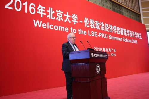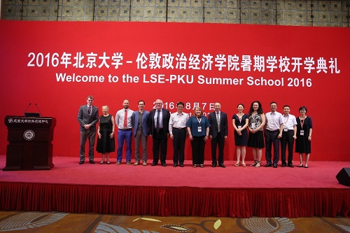 2016年8月7日下午,第十三期北京大学-伦敦政治经济学院暑期学校(The 13th LSE-PKU Summer School)在北京大学新太阳学生中心大厅完成报到注册,随后开学典礼在英杰交流中心阳光大厅举行。北京大学副校长李岩松、暑期学校学术委员会主席Michael Cox教授出席开幕式并致辞。开幕式由伦敦政治经济学院中国区事务主管Brendan Smith博士主持,出席仪式的还有北京大学国际合作部部长夏红卫,北京大学光华管理学院教授武常岐、伦敦政治经济学院教授Qiwei Yao等授课教师代表。共有来自50余个国家和地区的近300名师生参加了当天的开学典礼。