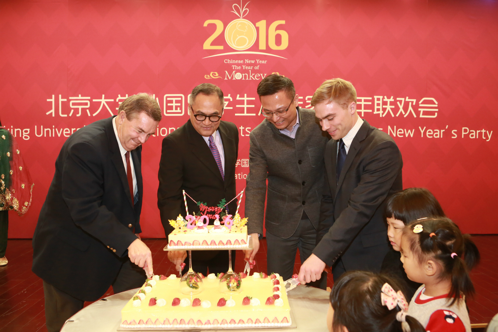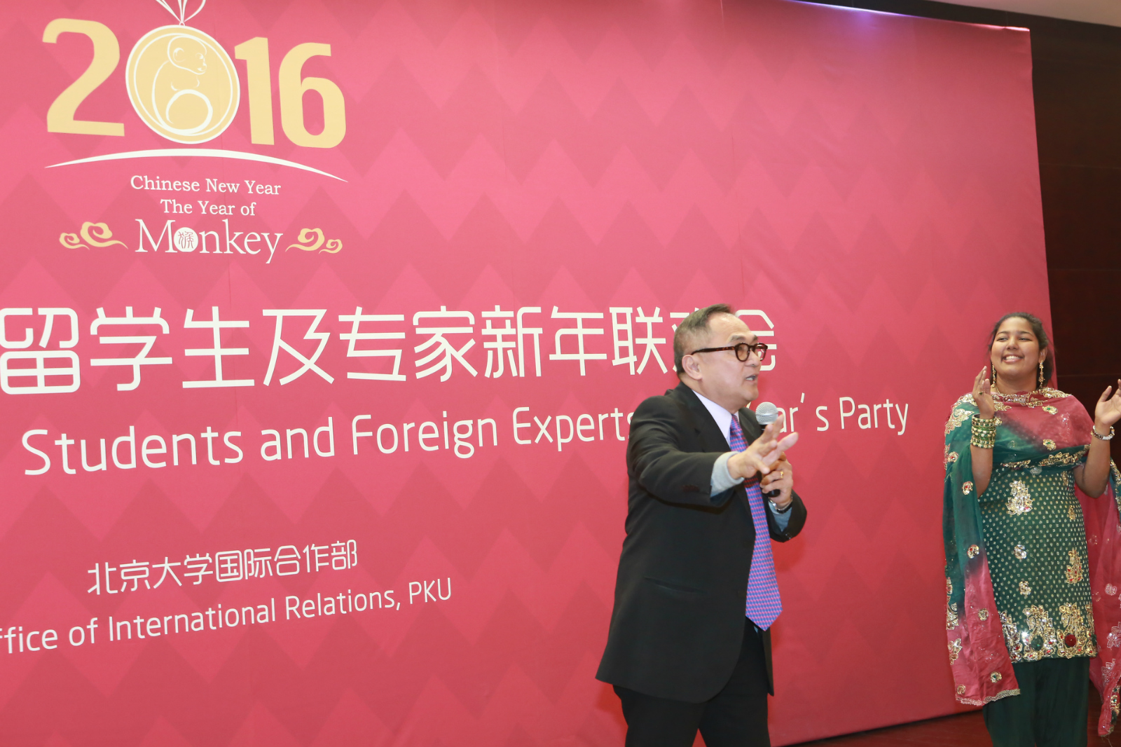 四海宾朋齐聚燕园,五洲师生喜迎新年。12月22日晚,2016年北京大学外国留学生及专家新年联欢会在中关新园一号楼群英宴会厅举行。外国专家、留学生、留学生校友及校内外嘉宾共300多人欢聚一堂,共贺新年。北京大学国际合作部部长夏红卫,北京大学国际校友联络会会长、菲律宾校友吉米,几内亚比绍驻华公使衔参赞卡林通,阿拉伯信息交流中心主任、巴勒斯坦校友穆斯塔法等出席,与留学生一起恭贺新年。
