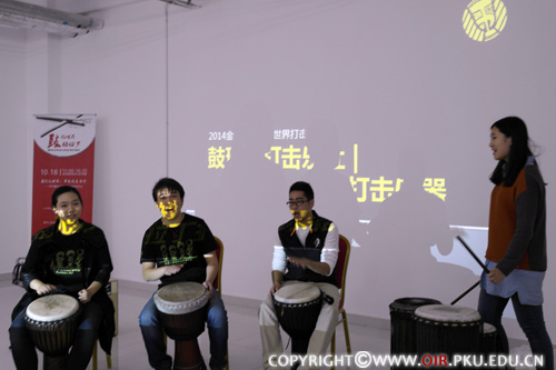 作为本届国际文化节的重要内容之一,“鼓玩儿世界:节奏就是力量——2014鼓玩儿打击乐社科普讲座”于2014年10月18日下午3点在新太阳学生活动中心举行。多位来自鼓玩儿打击乐社的资深打击乐爱好者为大家系统地介绍了打击乐的历史发展以及不同流派,并在现场为同学们呈现了一场场打击乐的听觉盛宴。