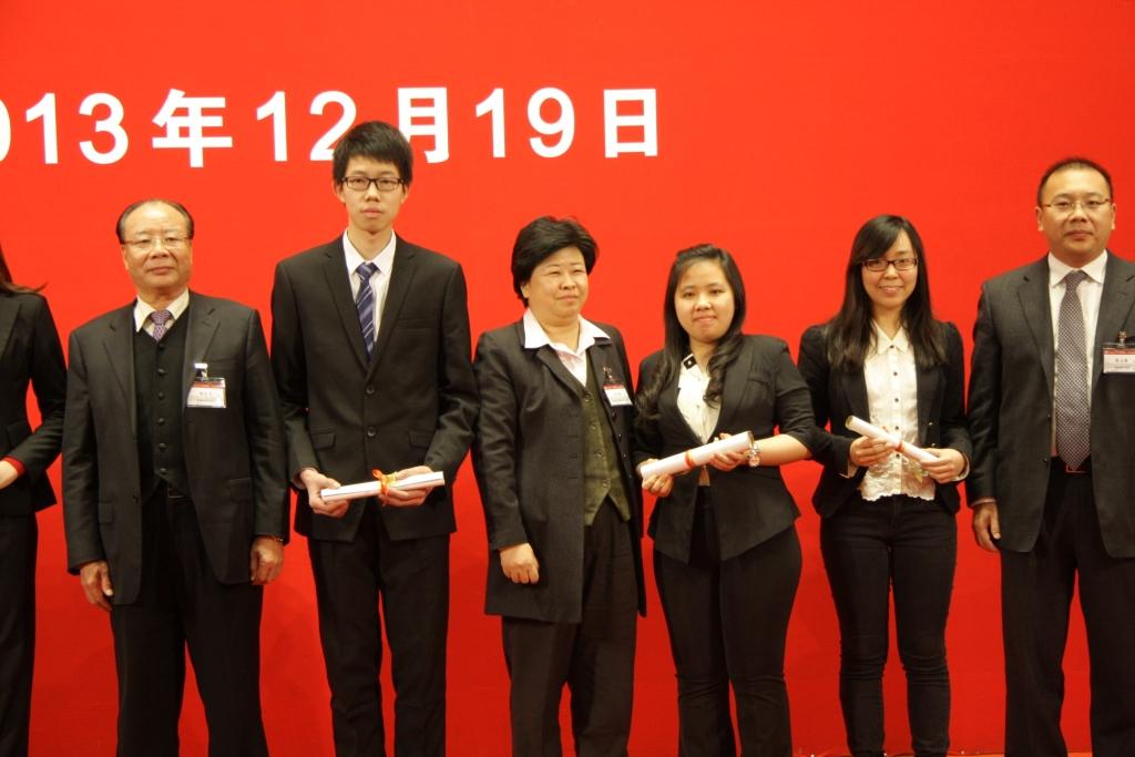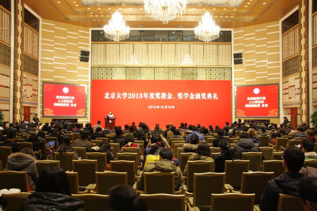 2013年12月19日下午,北京大学2013年度奖教金、奖学金颁奖典礼在英杰交流中心阳光厅举行。北京大学校长王恩哥,常务副校长吴志攀、刘伟,副校长王杰,党委副书记叶静漪,副校长高松等共同出席本次典礼,留学生办公室组织部分留学生获奖代表参加并上台领奖。