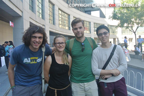 棕色的长卷发,一个高高的男孩接受了我们的采访,他是来自比利时的Frederic。他告诉我们他已经学习汉语5年了。作为一名中文爱好者,当问及他最初学习汉语的动机时,他的回答非常有趣。他说:“在比利时学校,学习汉语是一件非常酷的事情,所以他自然而然就开始了汉语的学习。”5年学习过程中,他曾到沈阳的辽宁大学求学一年。初到辽宁时,最强烈的感受还是生活上的不适应,“最初的3个月我非常想家,想要回到比利时。”但是,随着时间和校园生活的开始,Frederic发现自己逐渐习惯了辽宁的气候、食物,爱上了这个地方。“大概4个月后,我和我的朋友们经常会一起出去吃饭,我们最爱的是学校边上的新疆餐馆。”来到北京,又要开始一段新的求学生活,“我充满了期待,我喜欢中文。