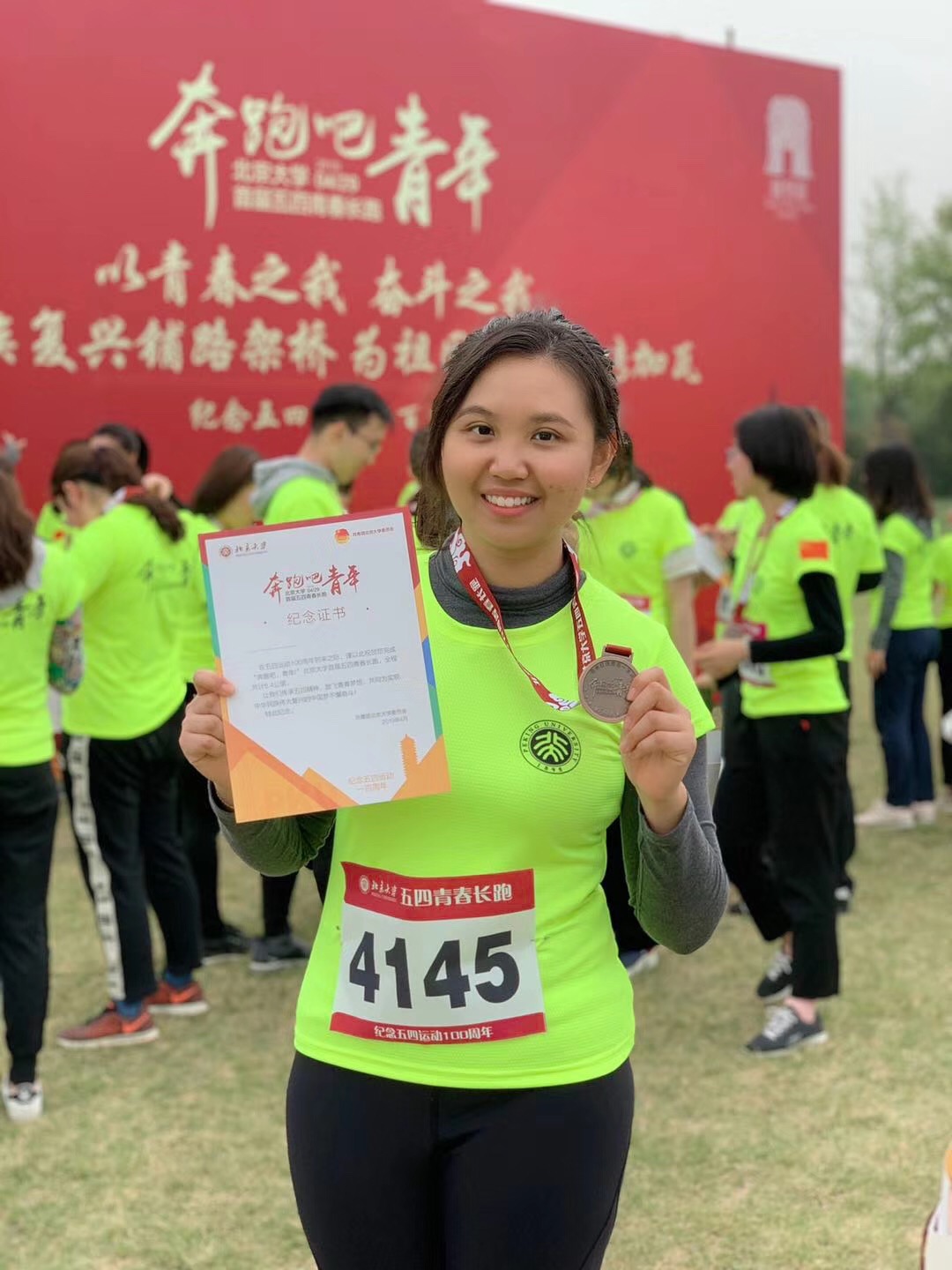 ——非常荣幸能够以留学生的身份,参与北大纪念五四百周年的活动。从北大到圆明园的长跑,在跨越历史的同时,也让我深刻体会到了中国青年们的激情与活力——在路上相互鼓励的“加油”,坚持不懈跑到终点的毅力。这或许就是五四精神在新时代的体现。(张汐莹 新加坡 国关本科)