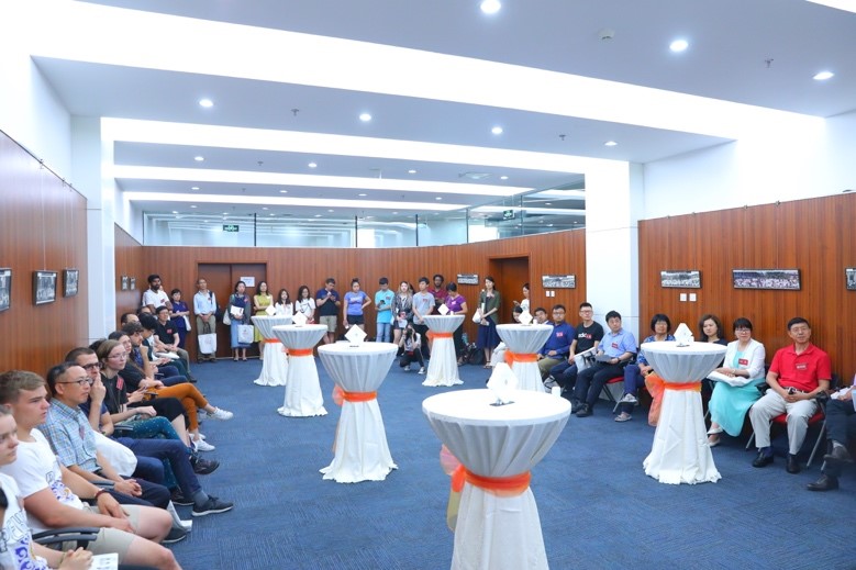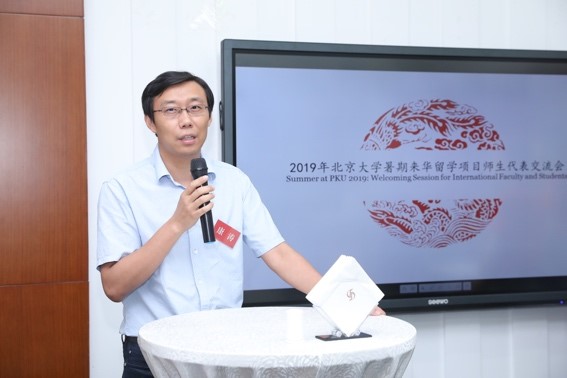 7月10日,为增进北京大学来华留学暑期项目师生间的了解,进一步推动北大与各国外院校的持续良好合作,由北京大学国际合作部主办的暑期来华留学项目师生代表交流会在中关新园5号楼学习共享空间如期举行。会议由来自智利的Beatriz同学和来自美国的Patrick同学主持,学校有关院系、部门负责人、暑期项目部分教师、学生代表共约60人出席了本次交流会。