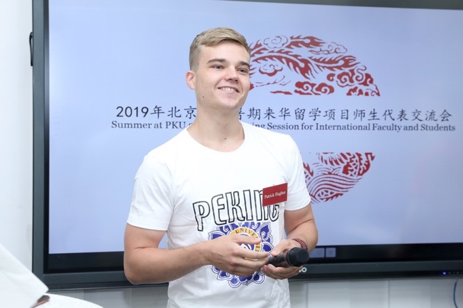 最后,来自牛津大学的学生代表Kearney Aileen与来自圣母大学的学生代表Patrick Hughes分别分享了自己在北大学习生活的体验。Aileen同学来自牛津大学圣休学院,她认为来北京大学学习为她的学生生涯增添了别样风采,她感谢北大为她带来丰富的学习机会和良好的配套支持,北大的课程不仅提高了她的汉语水平,还让她更加深入地了解中国文化,品尝中国的真正“原味”。Patrick同学充满感情地表达了对北大暑期课程的喜爱和感激,这是他第二次选择来到北大学习,他认为北大优质的教学资源和轻松的生活氛围让他感到自在和愉快,这所美丽的大学无疑已成为他心中的第二个“家”。