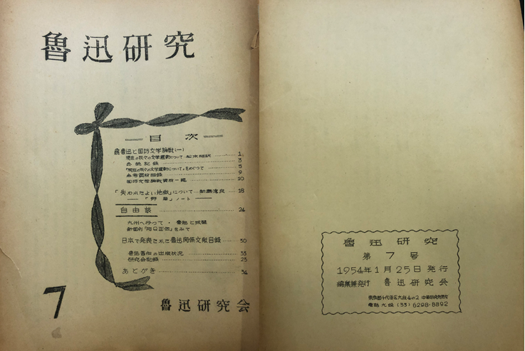 1957年1月发行的东京大学《鲁迅研究》原刊