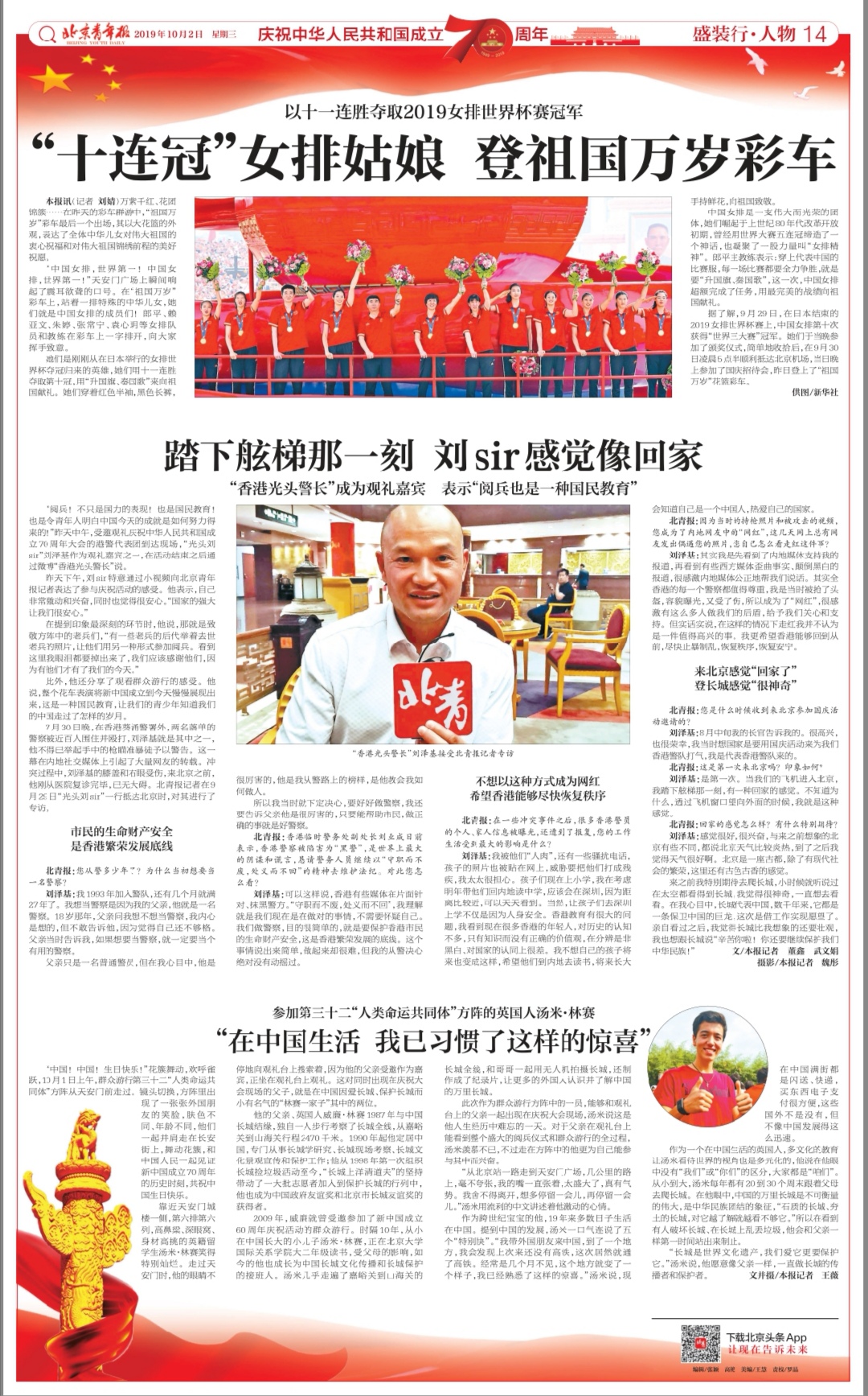 本文全文转载自《北京青年报》2019年10月2日 星期三 盛装行 人物14