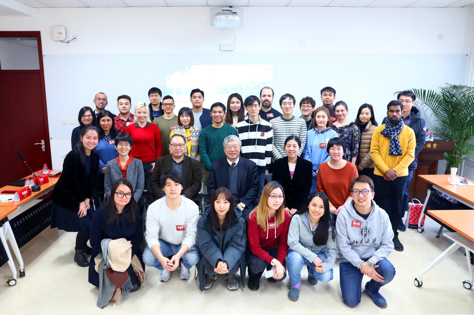 2019年12月18日,北京大学孔子新汉学计划新老生交流座谈会在北大国际汉学家研修基地大雅堂举办,孔子学院总部汉学研究工作处张科副处长、北大国际汉学家研修基地程郁缀教授和刘玉才教授、6位新汉学计划学生代表出席并发表了讲话,参加座谈的还有北大国际合作部副部长周曼丽老师、孔子学院总部相关负责老师和该项目在校生。座谈会由北大国际合作部留学生办公室副主任李慧芬老师主持。