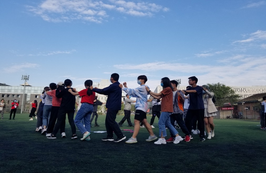 来自老师和同学的热情与善意冲淡了初来的孤独与无助,也驱散了阴霾秋凉。当雨过天晴,阳光洒满大地,一切陌生与距离尽然消融。15日下午,新生们同聚博雅塔下的第一体育馆,进行破冰游戏。各组首先围成圆圈,在为左边和右边同学按摩肩膀后,同学们渐渐打破拘谨,与身边的同学熟悉起来。第一个游戏——手牵手传呼啦圈,随着呼啦圈的传递,同学们的配合从生硬变得熟练,互帮互助、交流打趣中,文化背景的差异带来的隔阂感消弭于无形。而第二个问题你画我猜,充满中国风味的词语尽管造成了一定的游戏难度,但肢体语言转递中的不断再创造、大开脑洞的猜测和揭晓谜底的恍然大悟亦令众人大笑不已,感叹于同伴的奇思妙想。在热烈的气氛中,新同学们从相知到相熟,不断带给彼此安全感。