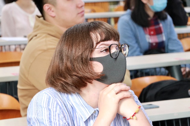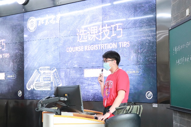 随后,7位学生辅导员代表作经验分享。中文系19级委内瑞拉籍本科生曹卓星建议新同学在努力适应身份转变的过程中关注心理健康,通过与朋友亲人的倾诉来疏解抑郁焦虑的情绪。他也建议新同学加强自我管理,提前做好学业规划,积极扩大自己的朋友圈。国际关系学院17级阿富汗籍博士生罗明引用蔡元培先生的“完全人格,首在体育”,强调参与体育运动的重要性,并详细介绍了校园运动地点和体育社团的情况。中文系18级日本籍本科生阿部美佳向同学们推荐了北京吃喝玩乐的场所及其特色,鼓励新生们丰富课余生活,积极融入中国文化。随后,国际关系学院20级乍得籍博士生生托马以《大学》为引,以自己本科就读北大的经历为据,勉励同学们打好基础,培养能力,在求学修德的征途中牢记初心,以独立自信的心态面对可能的困难与挑战。两位中文系18级本科生——来自韩国的辛志娟和泰国的陈志轩则具体介绍了教学计划、选课技巧等。最后,中文系19级韩国籍本科生李根珉讲述了院系学生工作的体系和内容,分享了自己在校学生会体育部的收获与帮助。