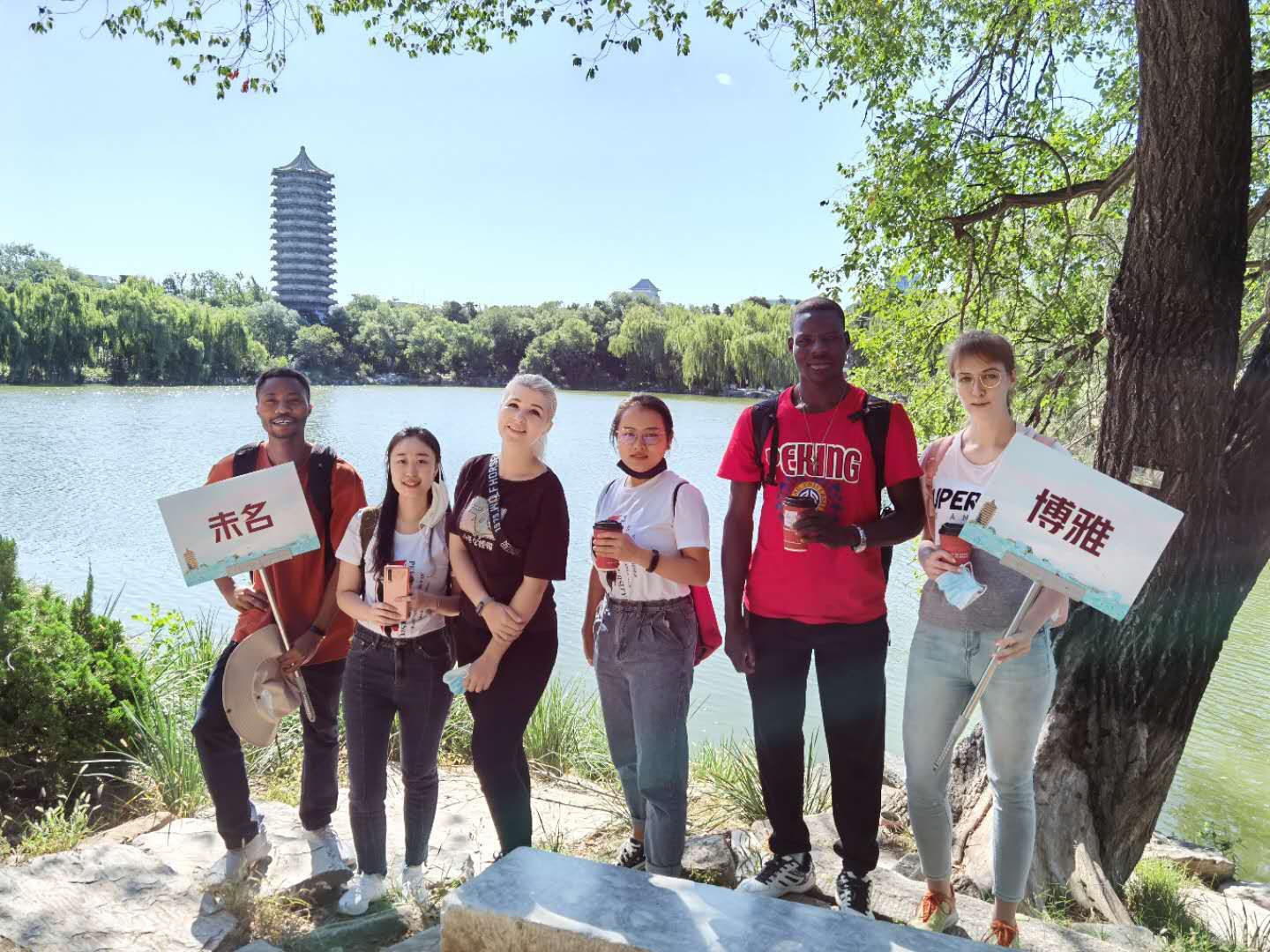同学们游览未名湖
