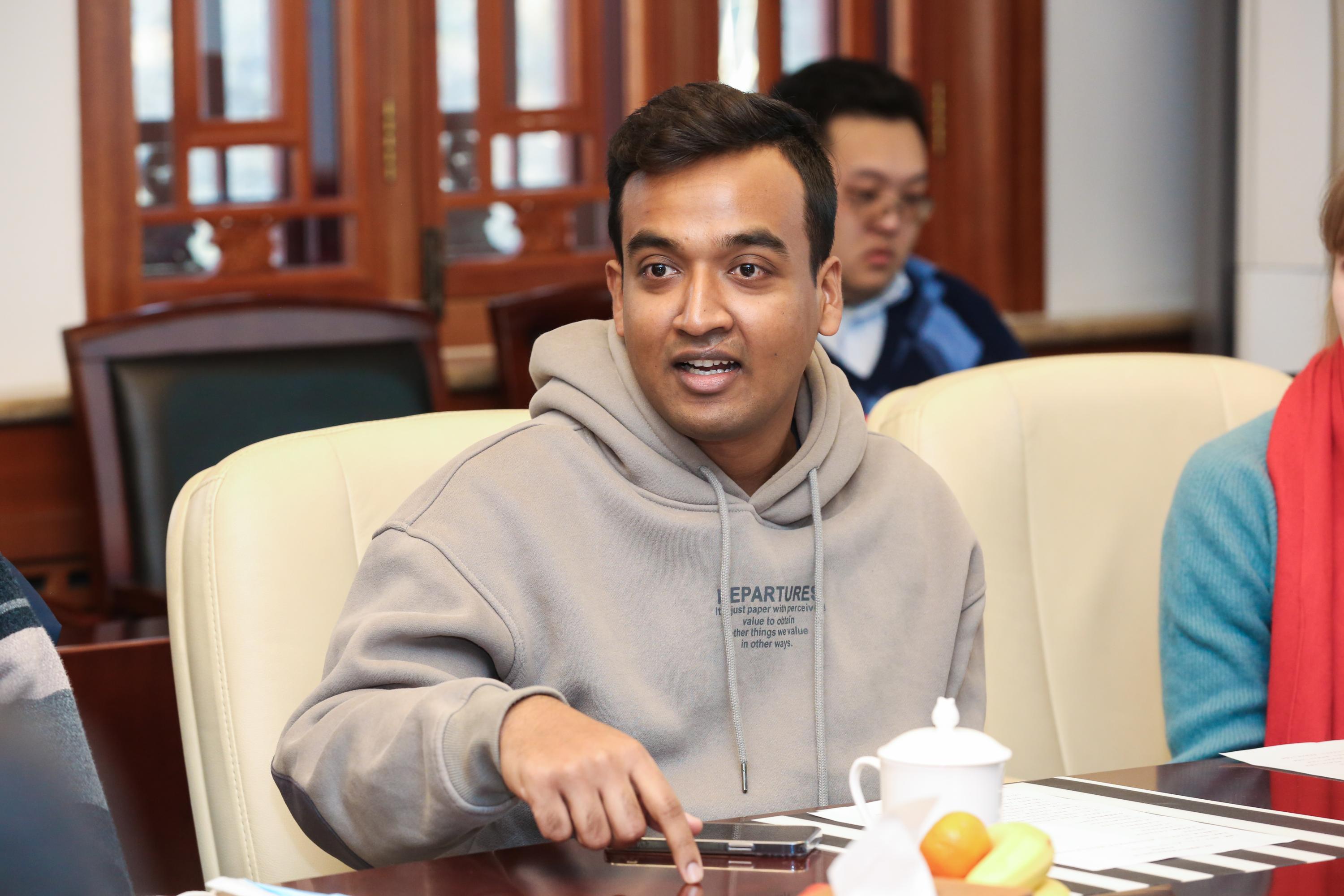 同学们在座谈会上分享了各自的冬奥情缘。元培学院19级孟加拉籍本科生阳光(MD MAHEDI HASSAN,SUNNY)曾是2019年国庆70周年游行方阵“人类命运共同体”中的一员。那次经历让他备受鼓舞,决心不断实践,体悟中国的发展脉搏。建党百年的2021年,阳光作为北大留学生“知·行计划”成员赴江西、新疆研学参访,用自己的镜头记录下许多美丽中国的瞬间。此次能作为开幕式演员见证冬奥盛会,他表示倍感期待与自豪,将继续用自己独特的视角记录中国,让更多人看到真实、友好、温暖的中国。