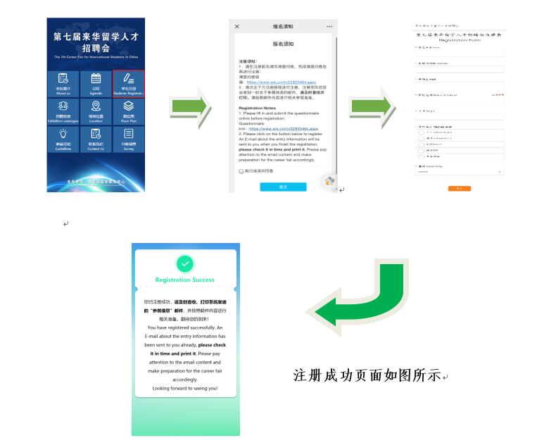 步骤3:在第七届来华留学人才招聘会微站进行注册,注册完成后,您将收到注册成功的邮件,请及时查收并打印邮件;