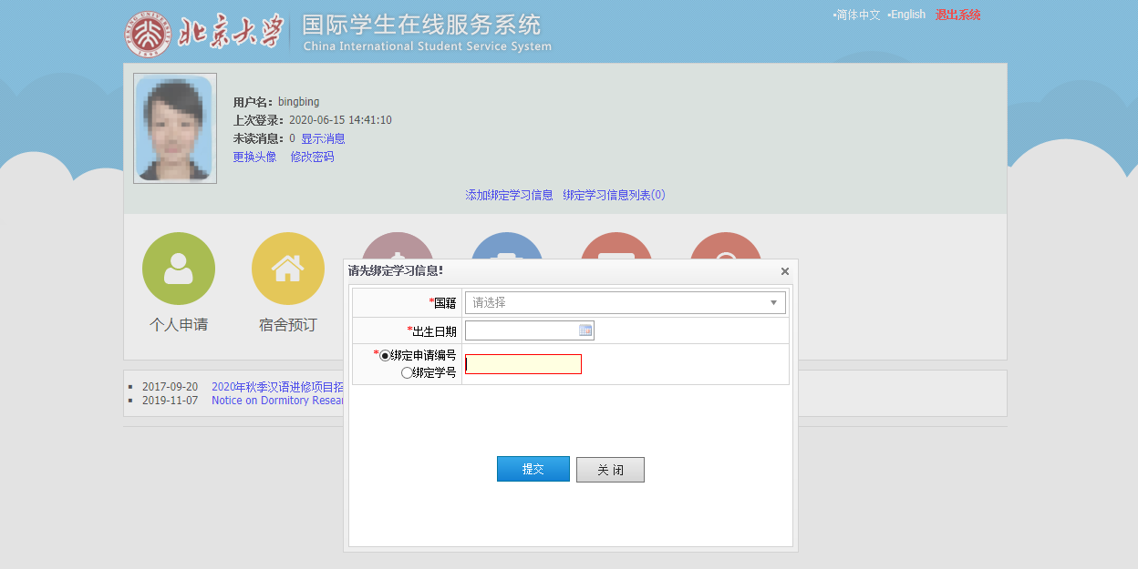 2.注册新账号或使用入学申请时注册的账号,进入“离校手续办理”,并与学号绑定