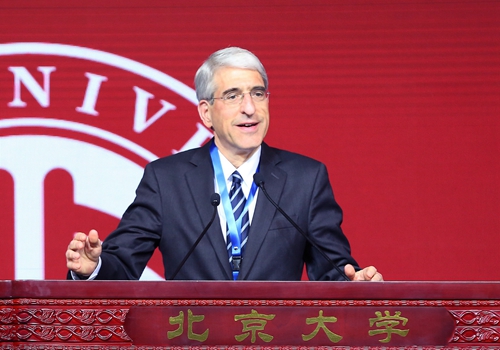 Peter Salovey, President of Yale University, representing presidents of overseas universities delivers a speech at the ceremony