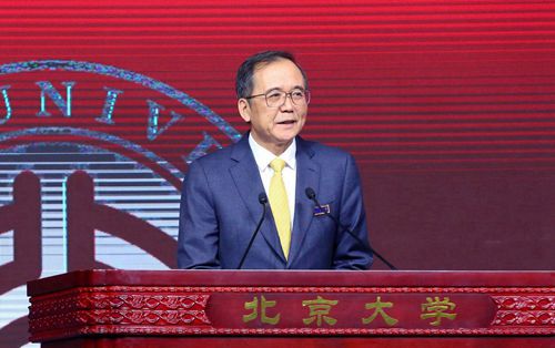 Lin Jianhua, President of Peking University, delivers a speech on the topic of "Universities are a Bridge to the Future"