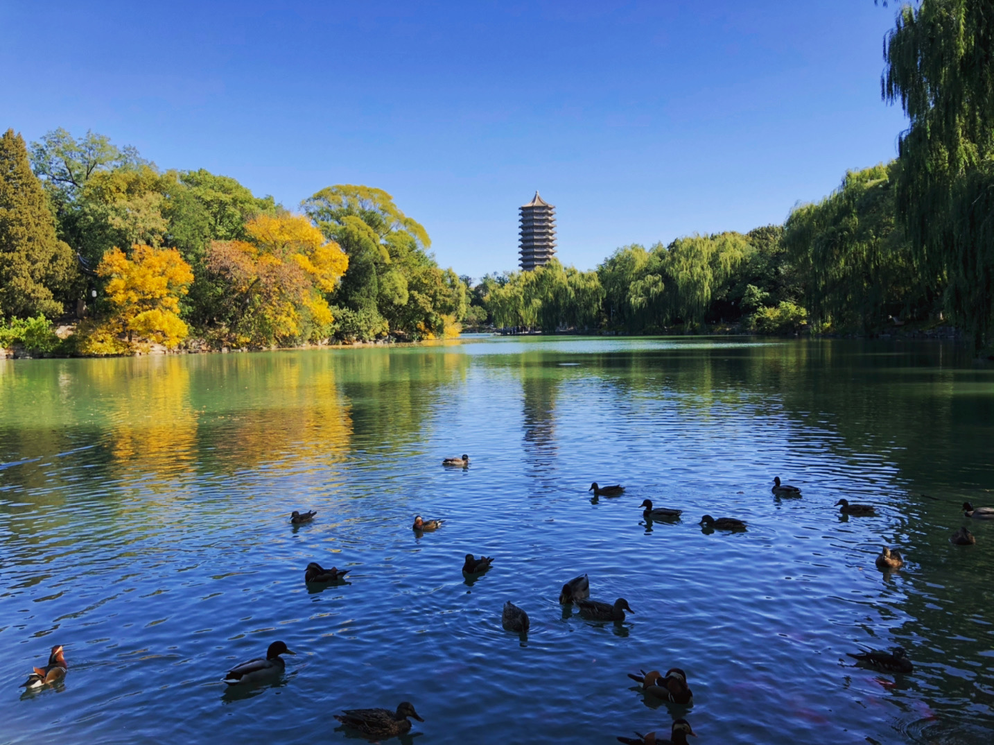 是波光粼粼的未名湖畔