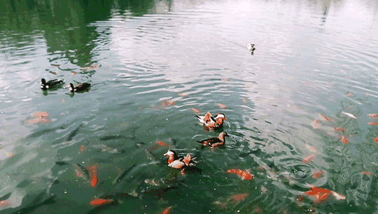 湖上哺育鸭雏的鸭妈妈们