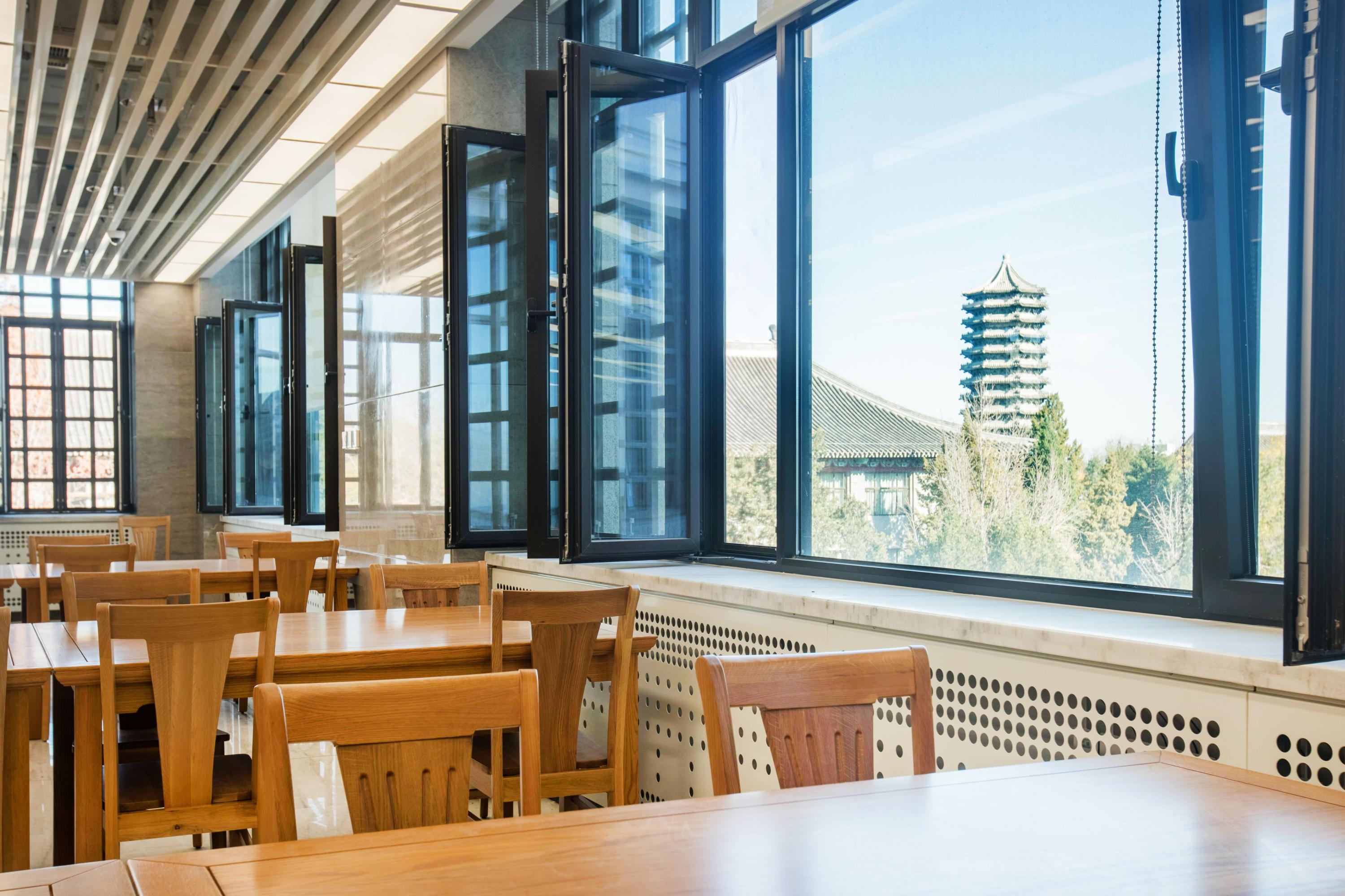 Behold the pagoda, the lake, and the library,