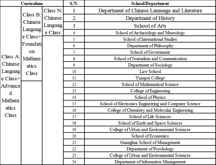 The preparatory major is Chinese and is taught by the School of Chinese Language Education. Aside from Chinese, students will also minor in mathematics, which is organized and taught by PKU’s School of Mathematical Sciences. Other courses and extracurricular activities will utilize the university’s excellent resources and provide students with a diversified and high-quality learning experience.